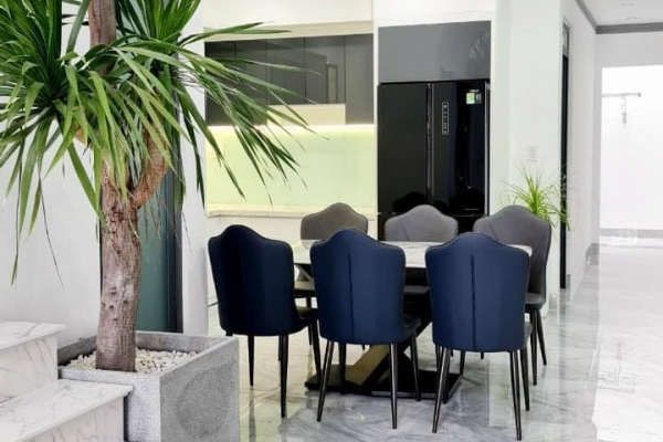 - Bàn ăn mặt đá, 6 ghế sang trọng.